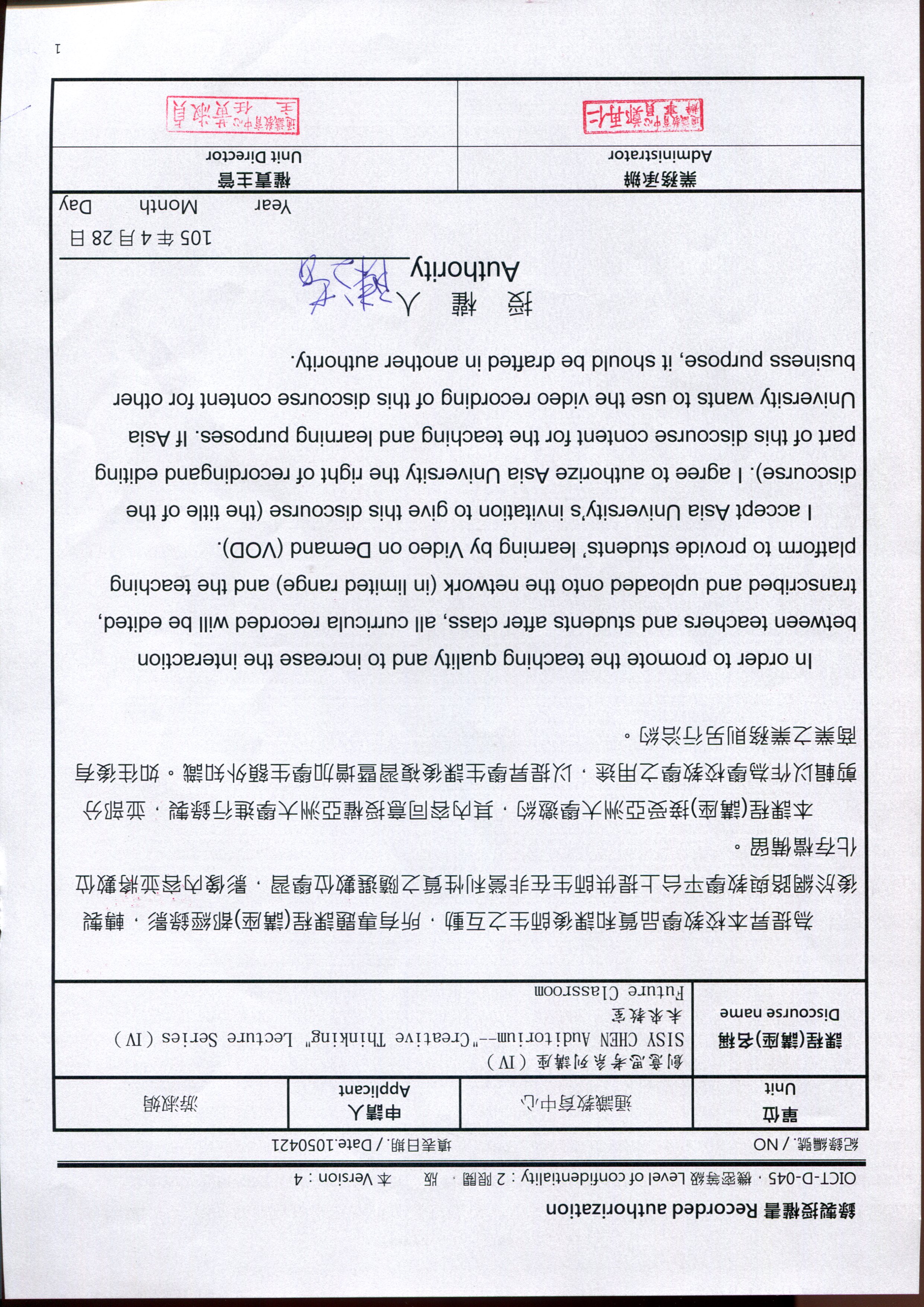 1050428 文茜講堂-創意思考系列講座(Ⅳ)-未來教室