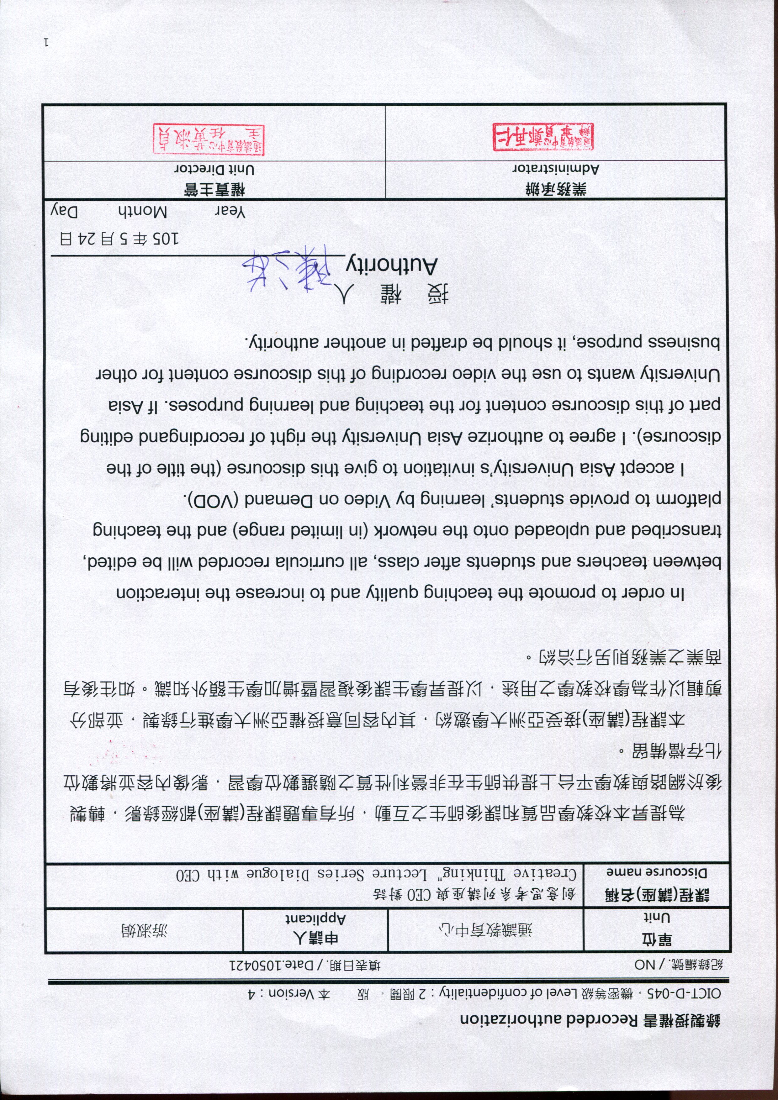 演講者:資訊傳播學系教授 陳文茜 、中國醫藥大學董事長、亞洲大學創辦人暨董事長 蔡長海
