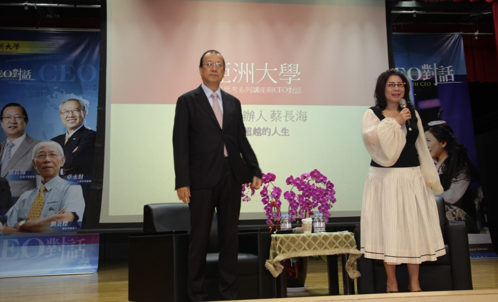 知名節目主持人、亞洲大學(Asia University, Taiwan)資傳系教授陳文茜,今(24日)天下午與亞洲大學創辦人蔡長海對談,陳文茜教授稱許蔡創辦人是位成功的醫學暨教育家,你是你自己人生最好的寫手,你的格局有多大,決定你的人生有多成功,蔡長海創辦人回應說,人生的確要有正確選擇,唯有超越自己,才能成就非凡人生!