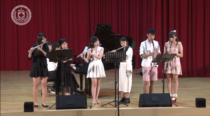 第三個曲目是由國樂器-笙所亞大林鈺惟同學接著擔任笙的獨奏,演奏「火車進侗鄉」,整首樂曲曲風多變,時而活潑、時而激昂、時而抒情,表現可圈可點;管樂合奏則帶來兩首日英流行名曲-夏川里美的淚光閃閃、卡本特兄妹的Top of the world,由長笛搭配豎笛的版本,令人耳目一新;最後由成軍半年的DogE樂團帶來創作歌手李榮浩的「李白」,主唱的王安清同學以高亢的音色,加上樂團的伴奏,炒熱氣氛。
