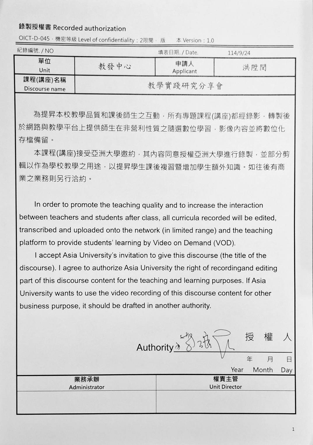 114教學實踐研究計劃的撰寫與實踐研究成果分享會特優獎 曾也慎