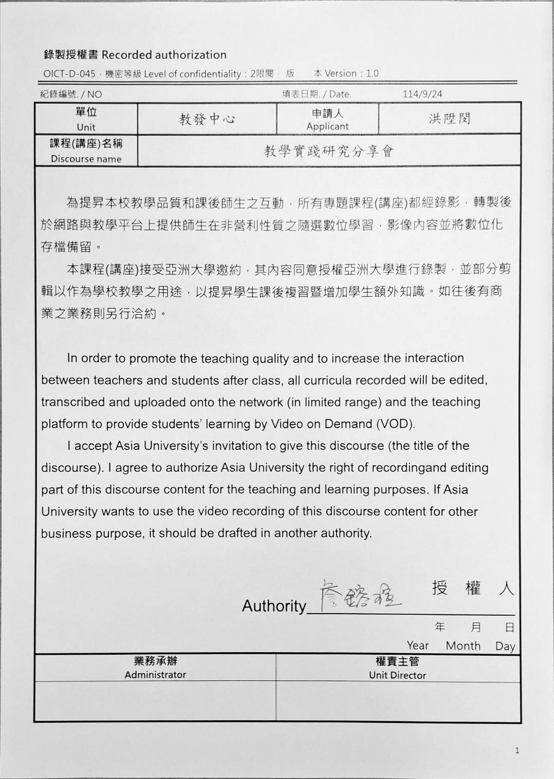 114教學實踐研究計劃的撰寫與實踐研究成果分享會特優獎 曾也慎
