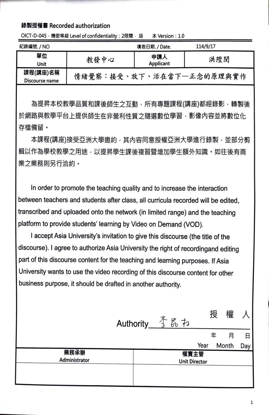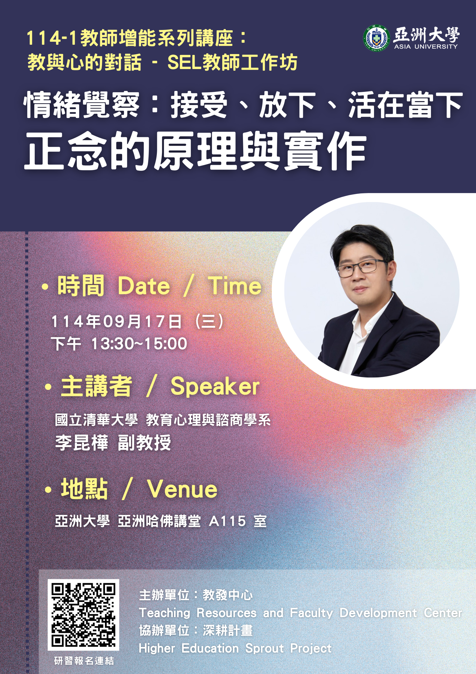 專題講座 情緒覺察:接受、放下、活在當下—正念的原理與實作 |