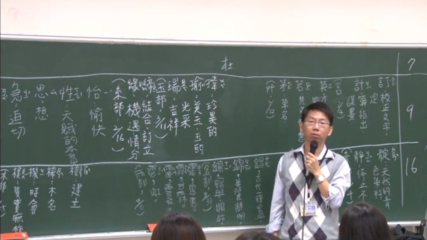 查詢文本中的重點名字,然後在井字格中寫下來,再查詢字典裡的相關事物。而這些被挑選出來的字就可以拿來贈人。此處謝老師還舉出古文劉義慶的許允婦為例,讓同學更加了解細節。