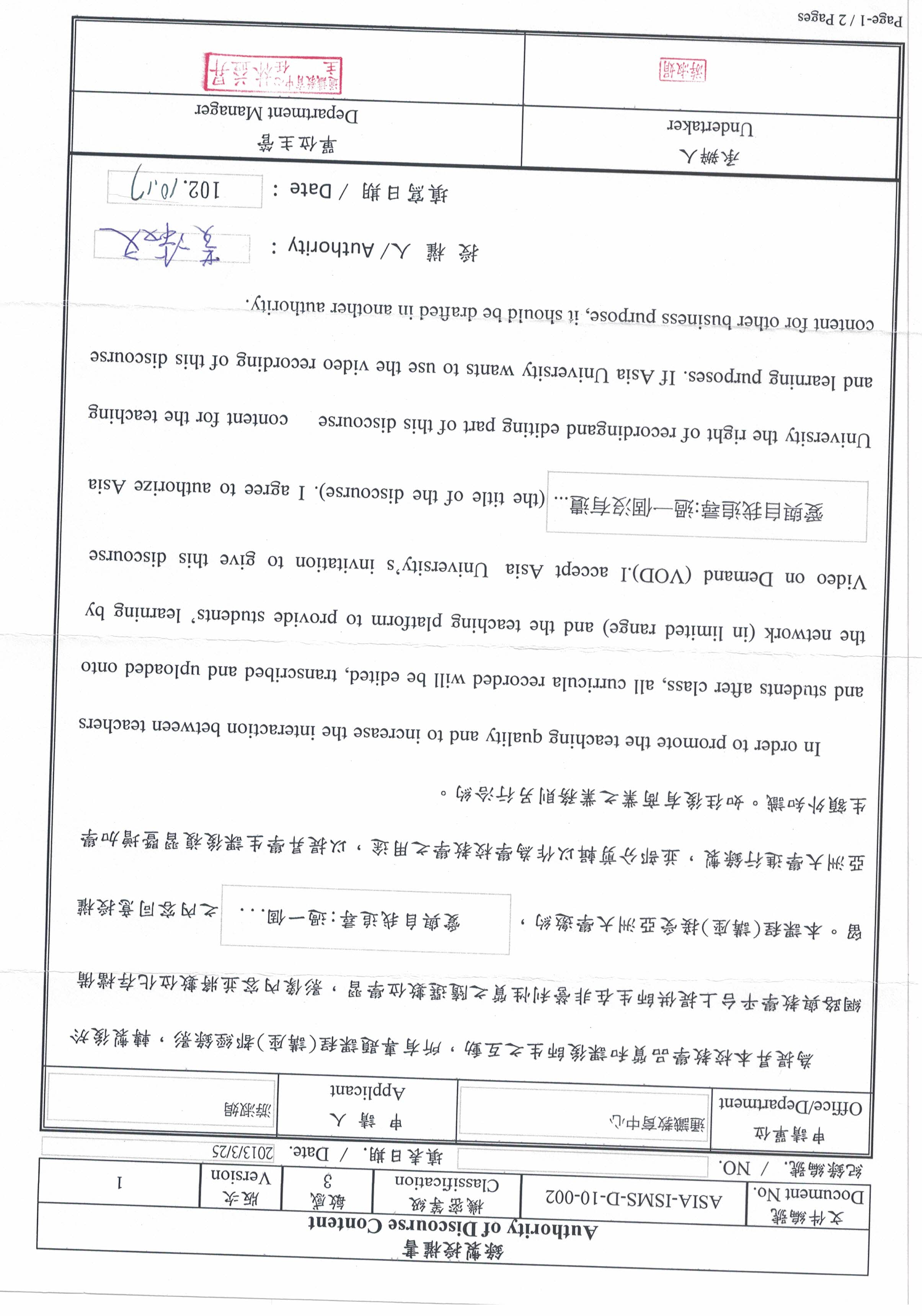 地點:行政大樓A101國際會議中心