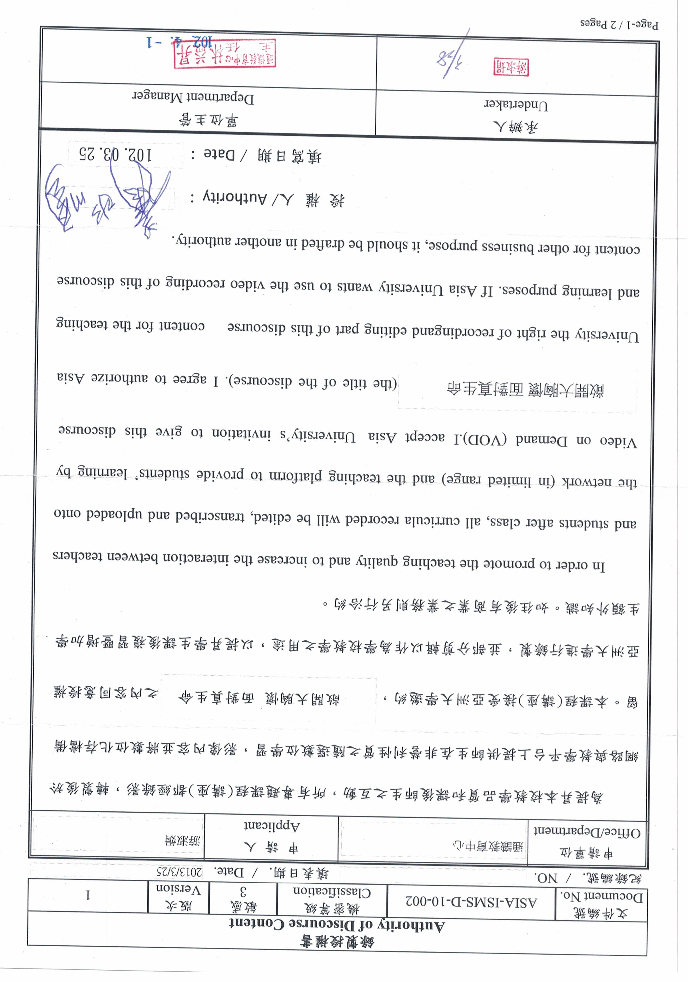 地點:行政大樓A101國際會議中心