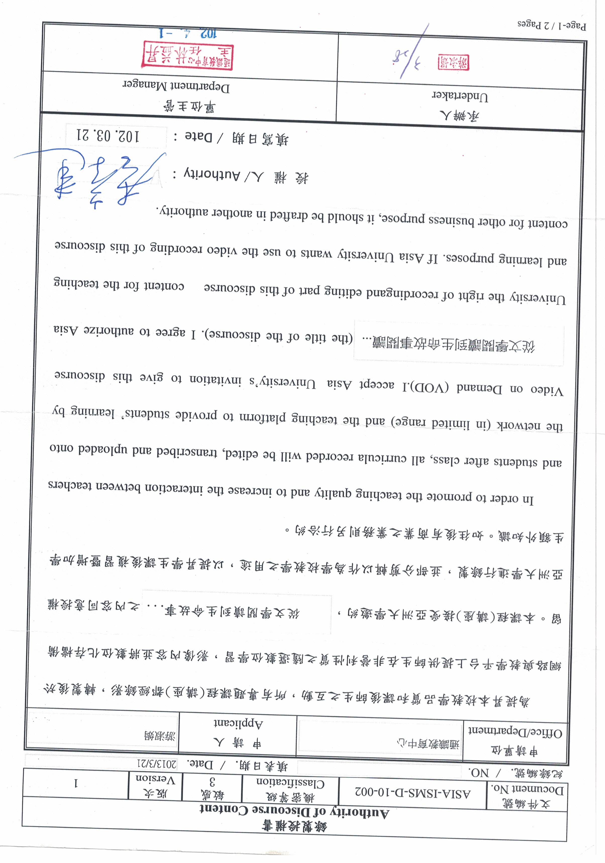 地點:行政大樓A101國際會議中心