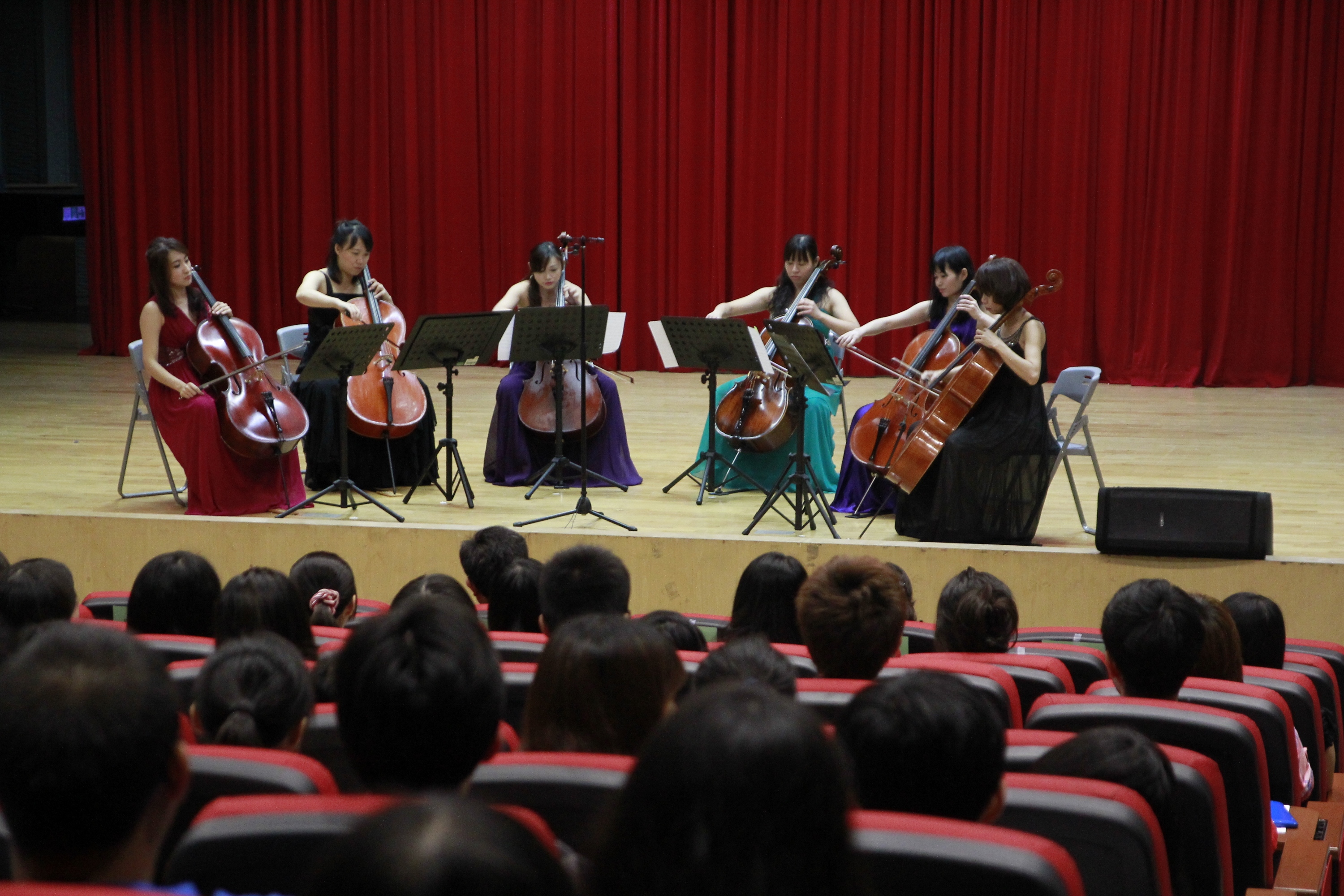 教學卓越計畫中心、通識教育中心、學務處30日晚間在國際會議中心共同舉辦大提琴音樂會,Bello(意即美的)大提琴室內樂團,是以國立台灣交響樂團大提琴首席李百佳,團員劉凱文、李妍慧及活躍於中部的大提琴演奏家吳昱嫺、莊惠淳、張智惠們交流組合而成的演出團體。