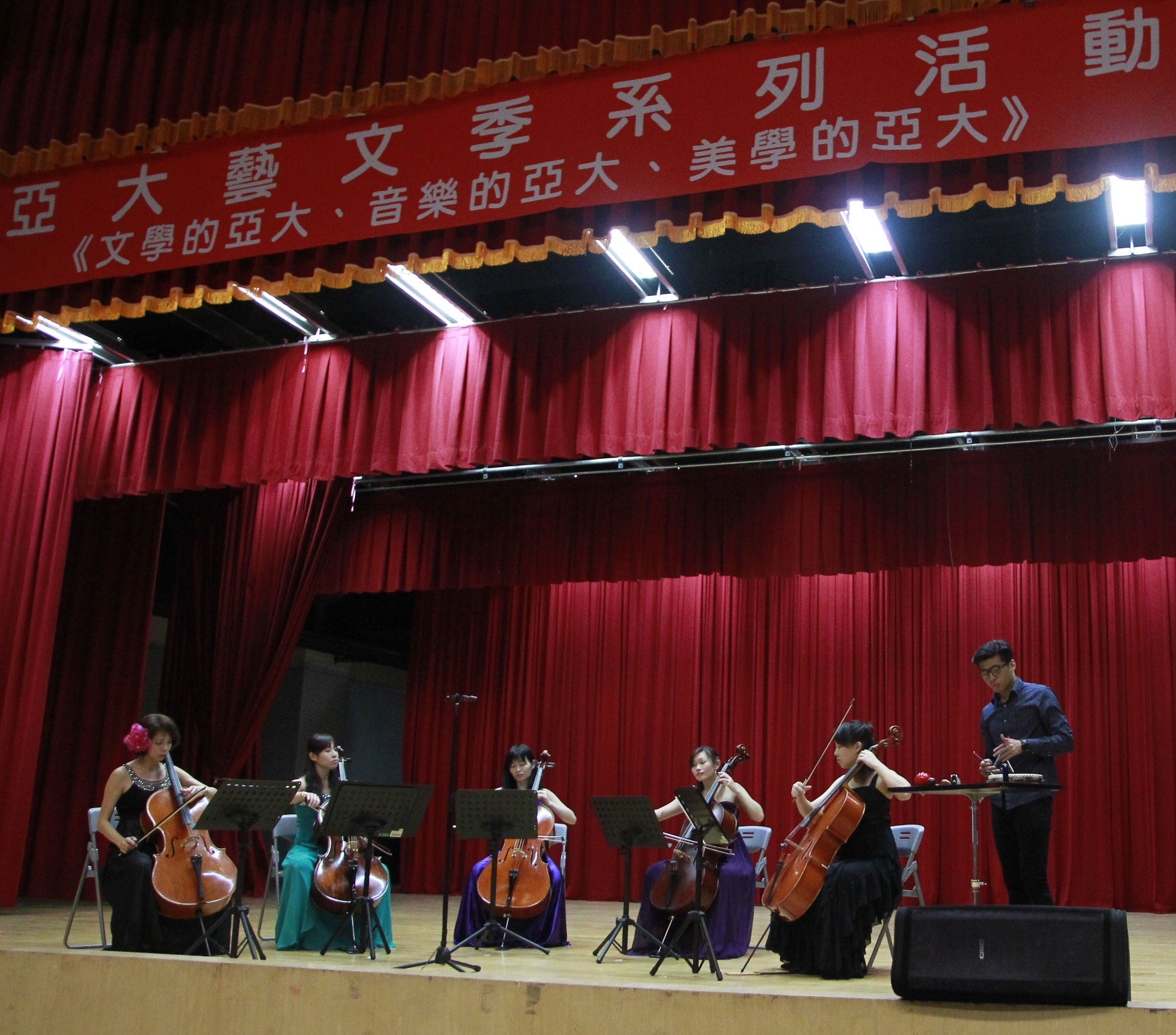 亞洲大學(Asia University, Taiwan)藝文季音樂會─大提琴音樂會,4 月30日晚間在亞洲大學登場,邀請Bello大提琴室內樂團6位大提琴家蒞校演出,身兼主辦人、主持人的幼教系劉斐如老師說,此次演奏會,帶來卡門組曲、威廉泰爾序曲、拉黛斯基進行曲等6大曲目,是以大提琴重奏的演奏形式呈現,讓亞大師生能夠以最直接的方式,聆聽大提琴最純真且細膩動人的和聲之美。