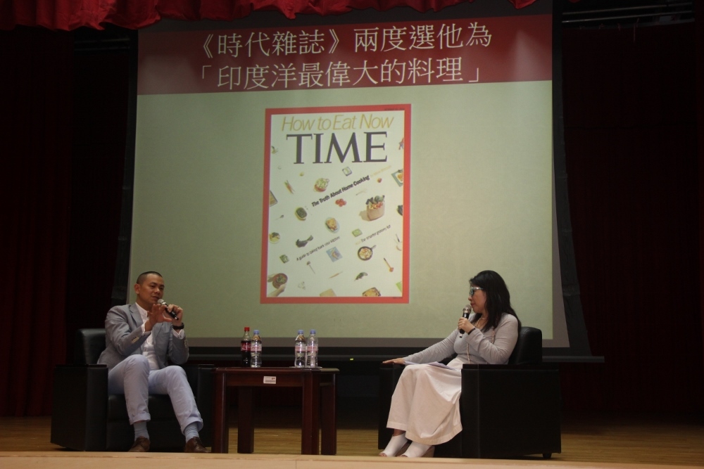 知名媒體人、亞洲大學(Asia University, Taiwan)講座教授陳文茜,今(19日)天下午在亞大「文茜講堂」,與被TIME雜誌兩度 譽為印度洋最偉大主廚、台灣之光江振誠以「八角哲學的創意與解構」為題展開對談。江振誠勉勵亞大學生,做個簡單、好奇學習的人,不要光說不練,面對困難與考驗,覺得只要是對的,就花120分的力氣去完成它。他有社會責任幫助台灣新的世代定義「台灣料理」?至少弄清楚什麼是「台灣料理」。