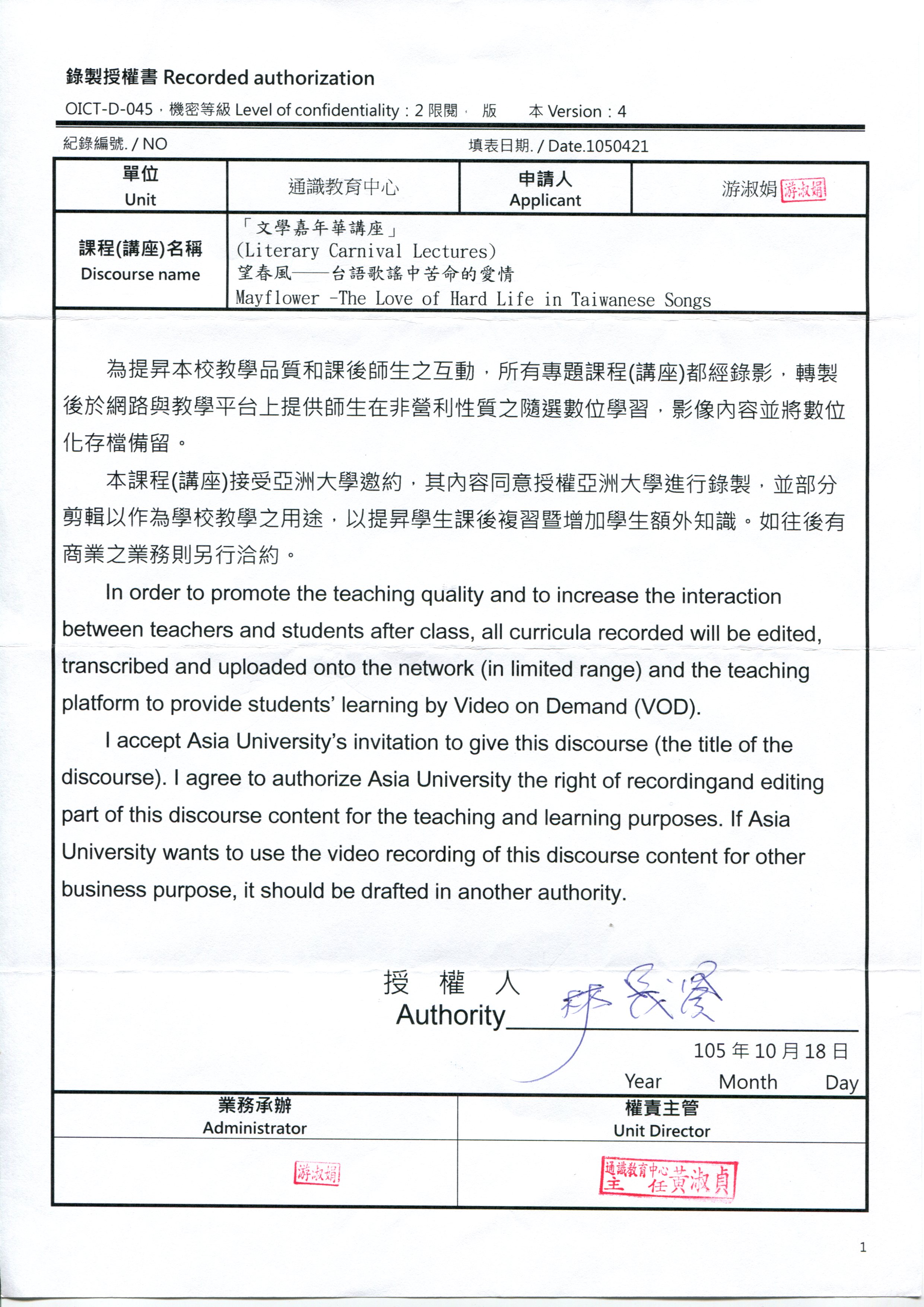 地點:行政大樓A101國際會議中心