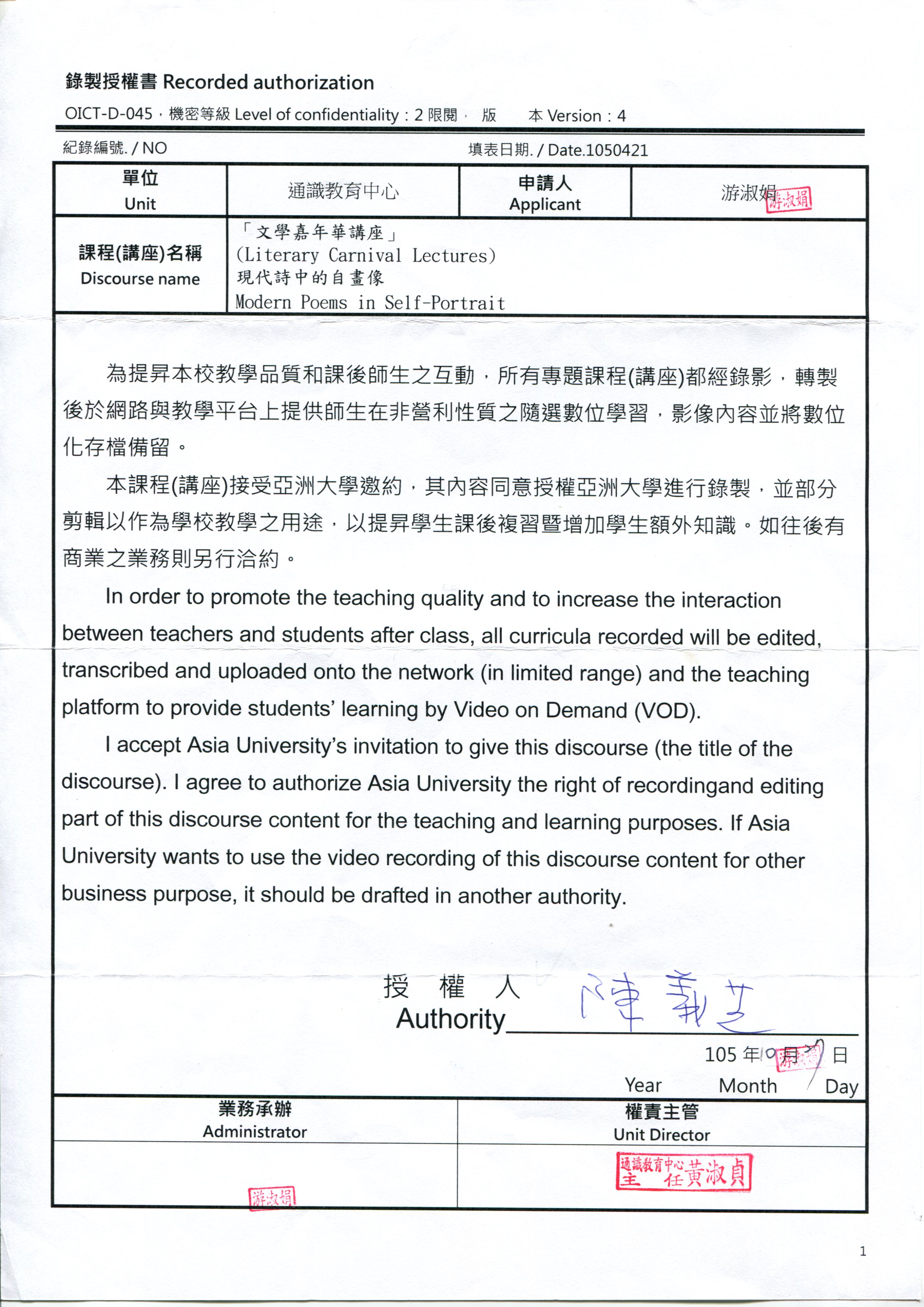 地點:行政大樓A101國際會議中心