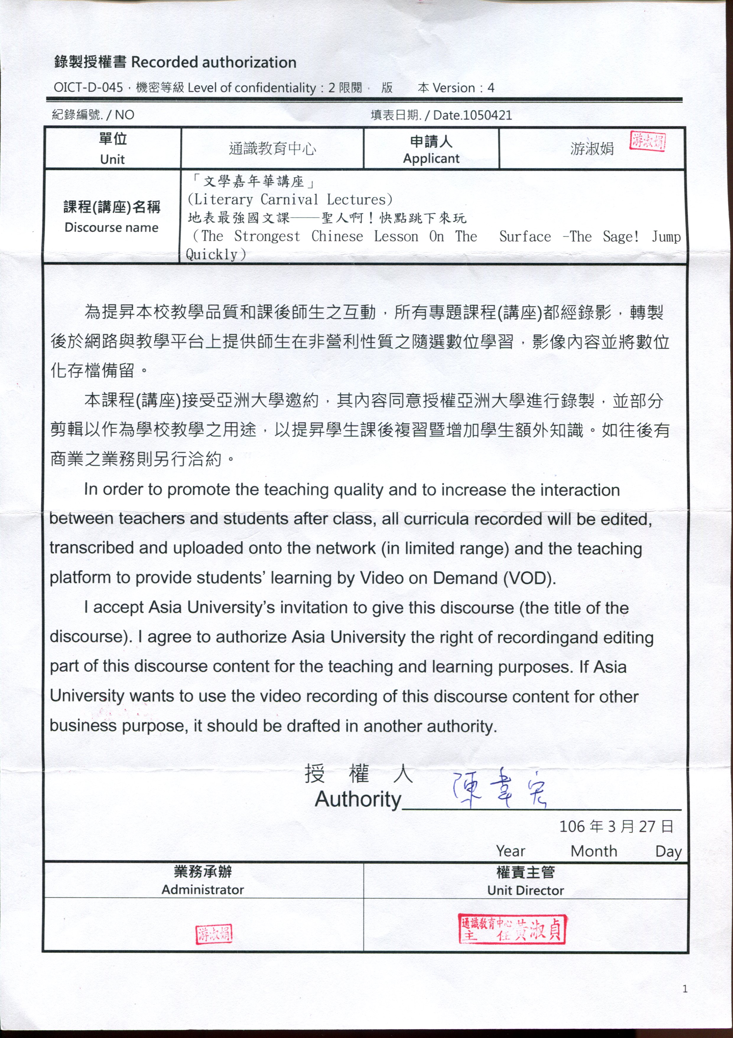 地點:行政大樓A101國際會議中心