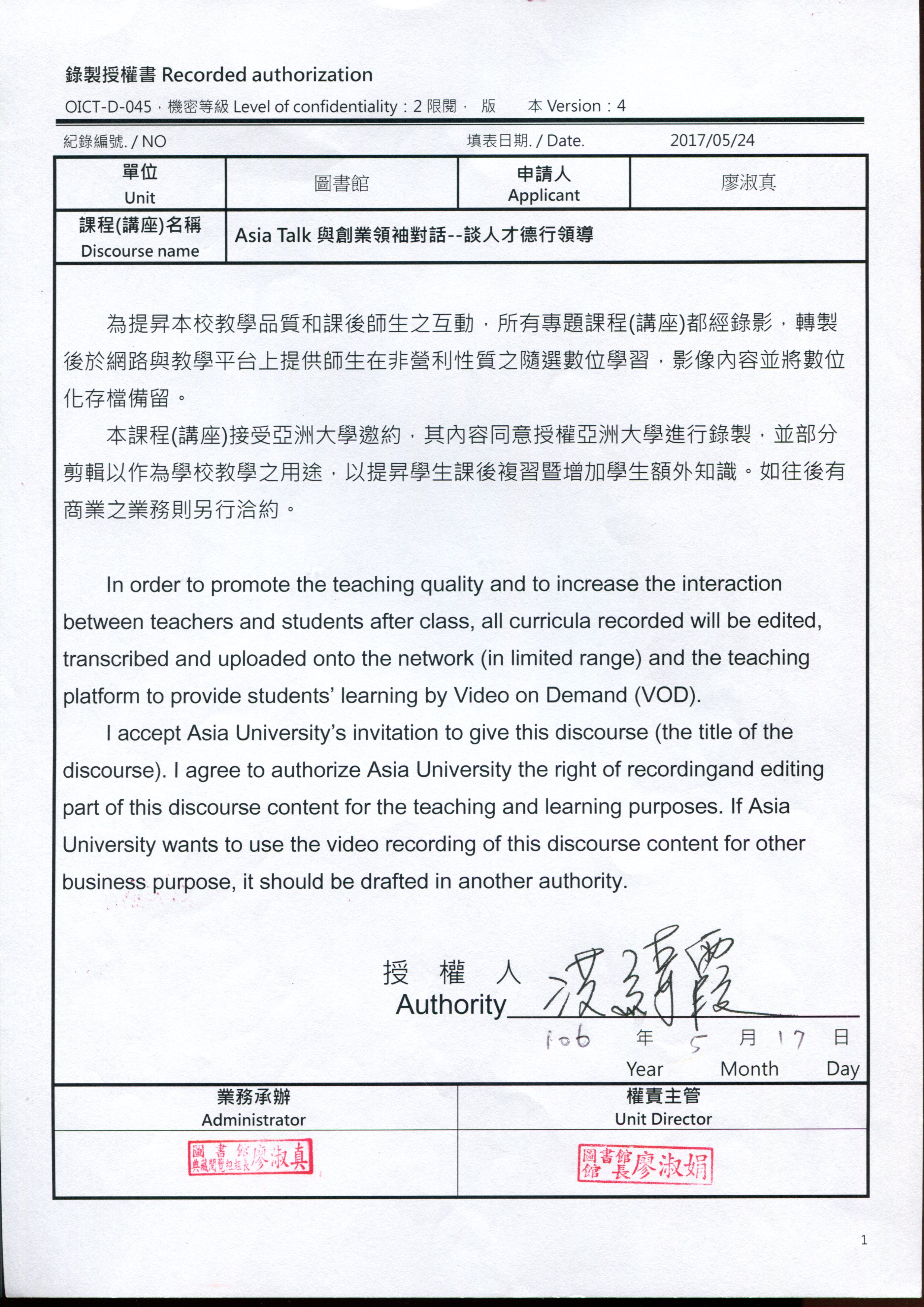 1060517 Asia talk與創業領袖對話 談人才德性領導/ 洪綺霞