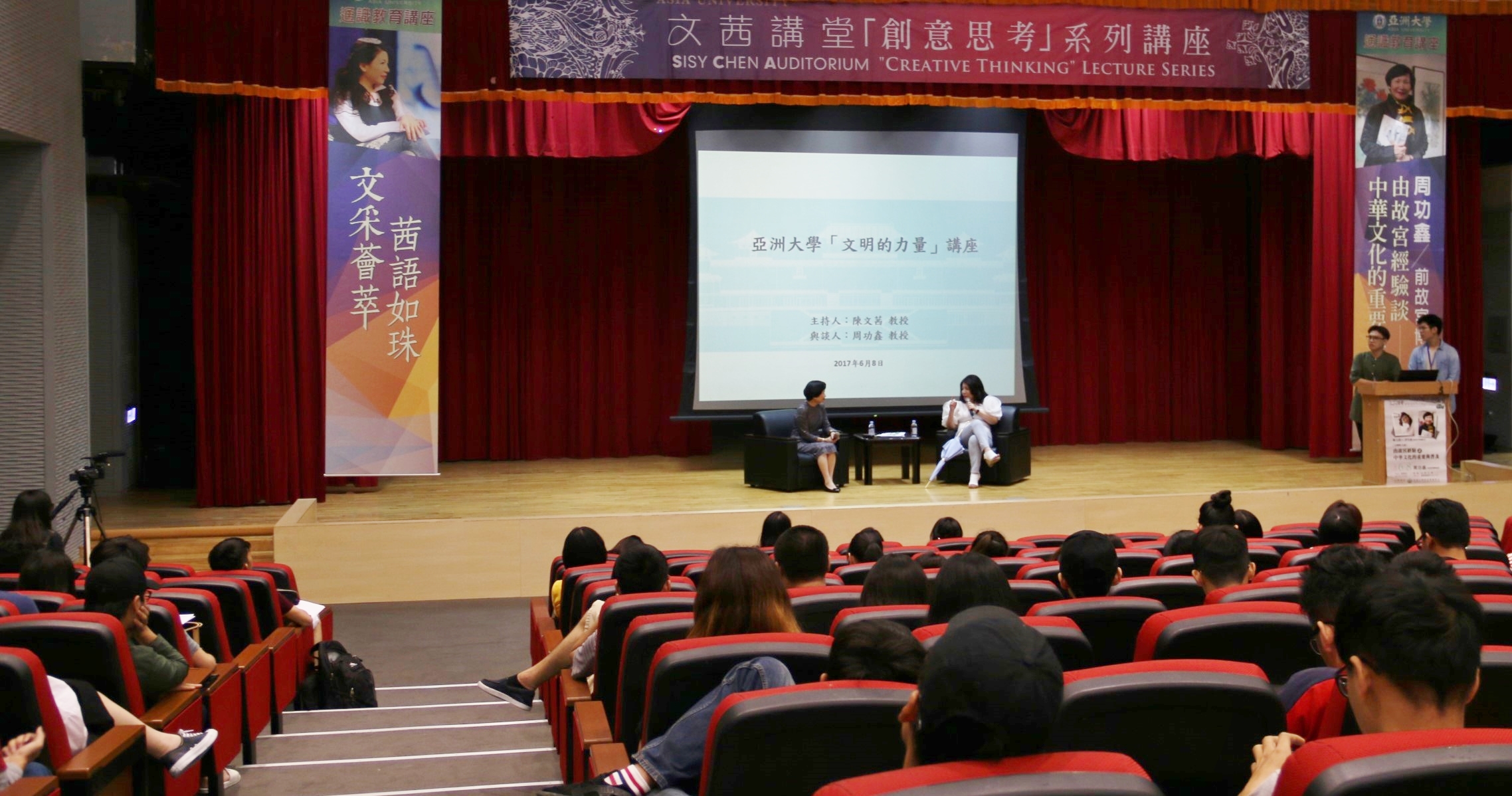 知名媒體人、亞洲大學(Asia University, Taiwan)講座教授陳文茜6月8日下午在亞大「文茜講堂」,與前故宮院長周功鑫對談,主題是「由故宮經驗談中華文化的重要與普及」,周功鑫告訴同學們,中華文化有許多方面值得開發學習,學習文化可以充實人的內涵。了解文明後,再自己創造出新的東西,能使我們更有涵養,以及進步。