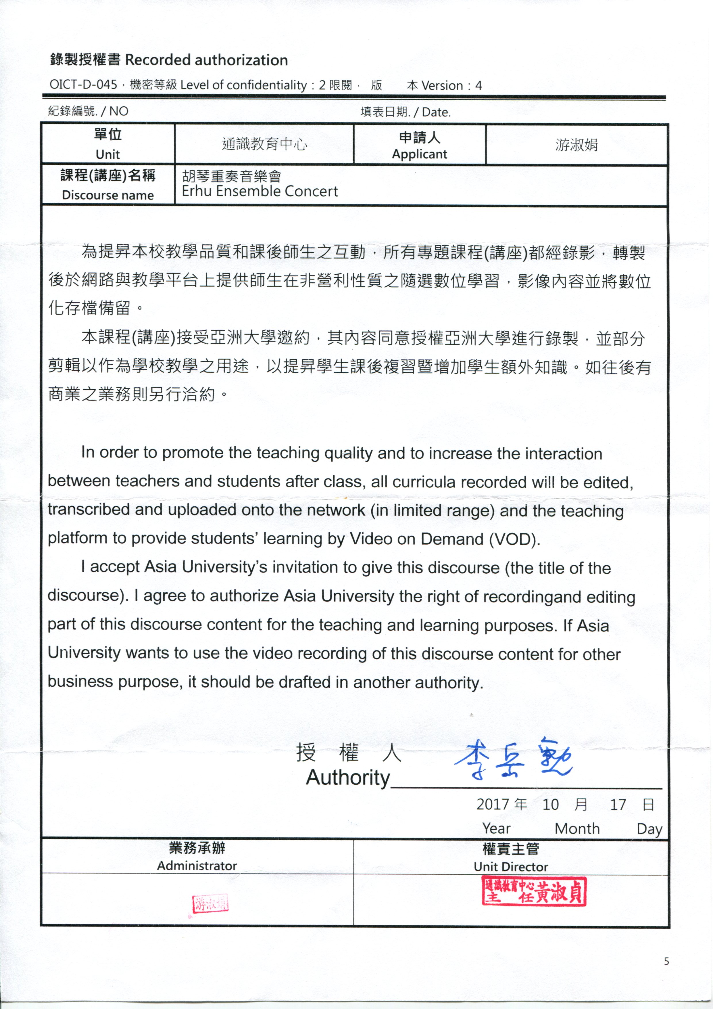 通識教育中心主任黃淑貞表示,這是亞大第二度邀請去年4月甫成立的【聽說蒞校演出,【聽說一把胡樂團】由鄭勳琦、李岳勳、張伊瑩3位台灣優秀青年胡琴演奏家再次為與會的亞大師生及霧峰居民,結合大提琴李宜臻和鋼琴家楊千儀共同弄絃、演奏,中西音樂交融,帶來精彩的音樂饗宴!尤其17日晚間胡琴重奏音樂會,現場聽眾隨著樂音一起擺動,陶醉之情溢於言表,活動在「安可」聲中畫上完美休止符!