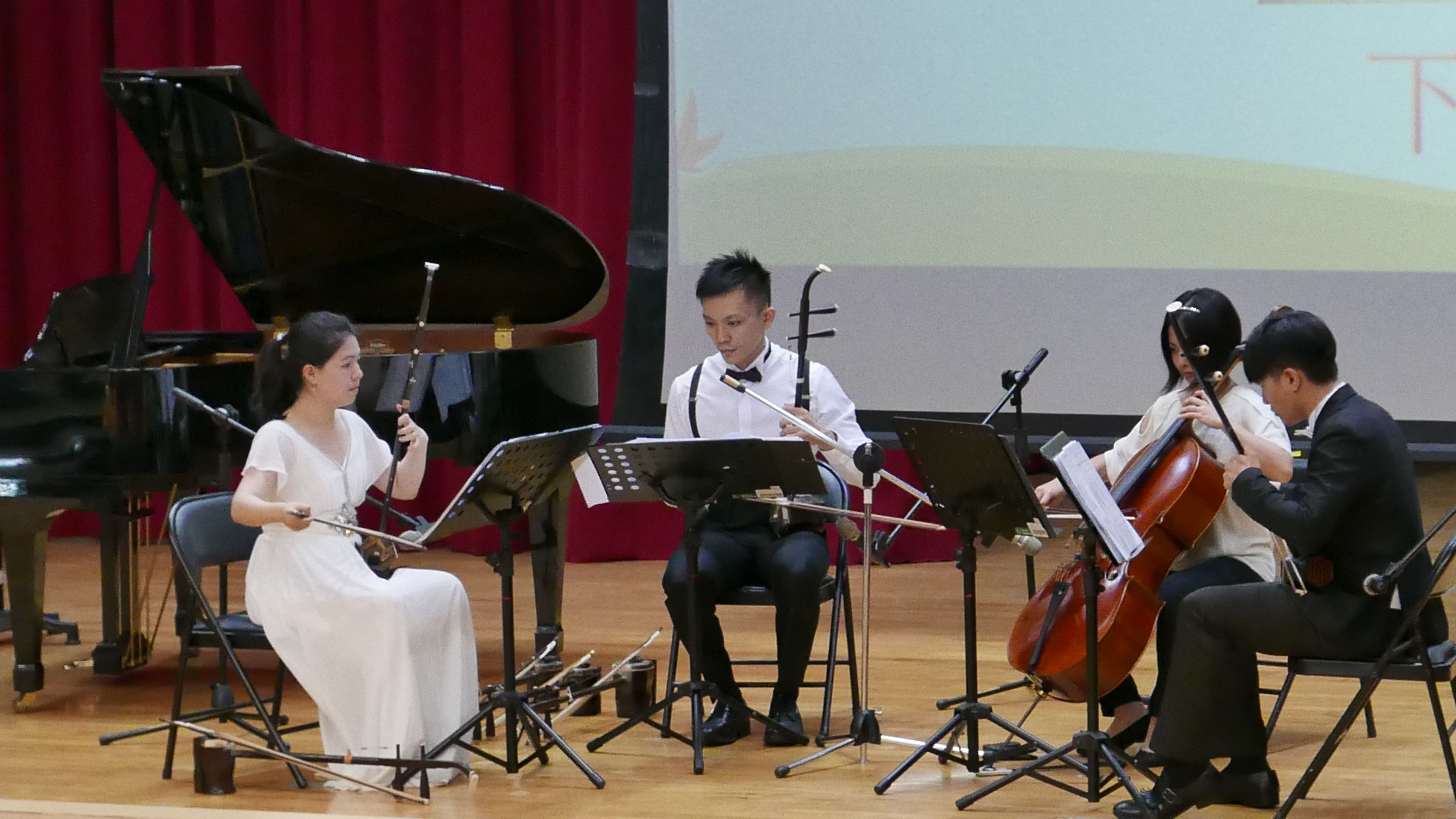 從古典的〈採紅菱〉開始,穿插了學生熟悉的韓劇《來自星星的你》主題曲,以及電影《我的少女時代》主題曲,連接童趣的宮崎駿、久石讓組曲,時而高低音胡琴對作,時而中西弦樂交織,彼此一個眼神、一抹微笑,就能心領神會,完美協調,胡琴、大提琴以及鋼琴錚錚鏗鏗如飛瀑宣洩、如小溪清流,演奏家與樂器琴人合一,熱鬧的音符盪漾在整個會唱,有的同學瞠目忘然,有的連忙抓起手機紀錄,有的跟隨樂音輕輕搖擺,恍如作了場美夢!