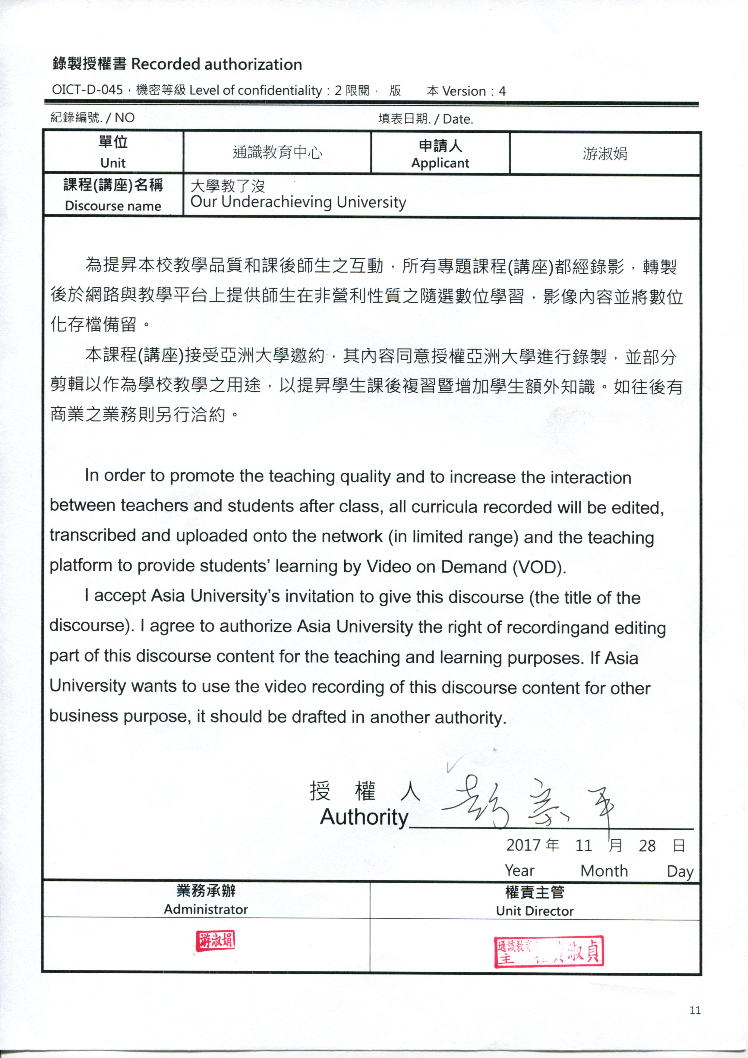 地點:行政大樓A101國際會議中心