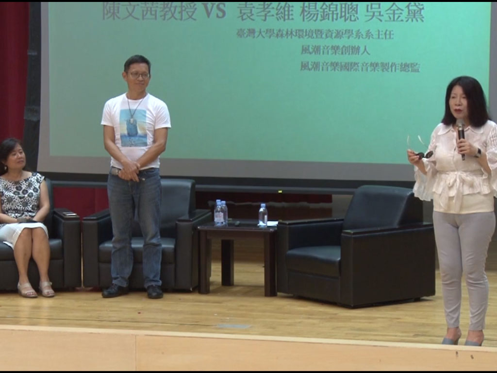 演講者:資訊傳播學系教授 陳文茜 、台大森林系教授 袁孝維、風潮音樂創辦人 楊錦聰