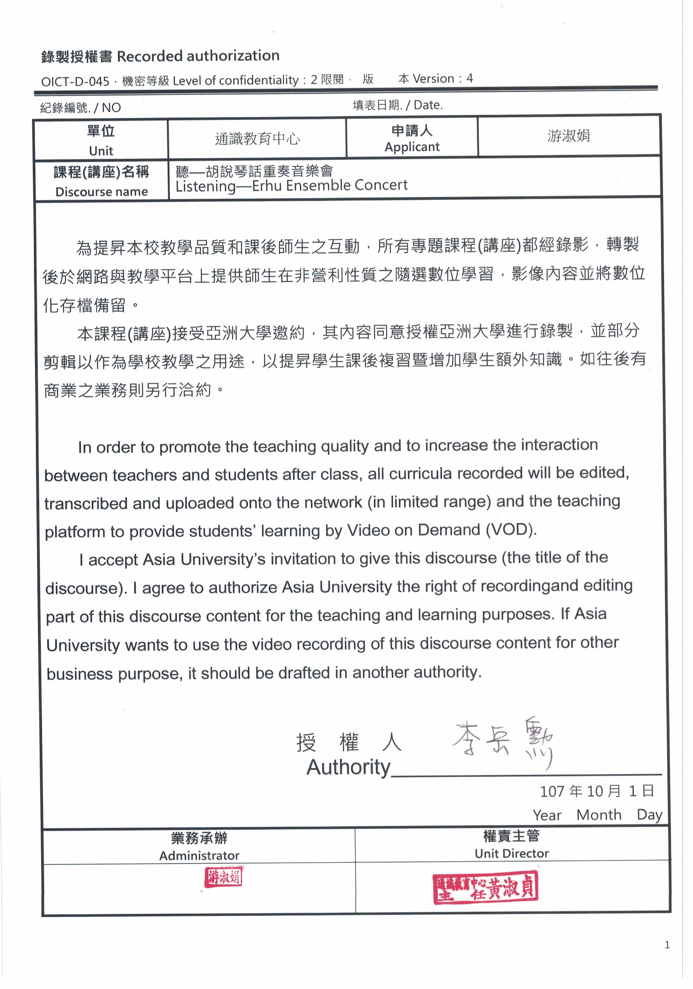 亞洲大學(Asia University, Taiwan)通識教育中心10月1日舉辦「聽─胡說琴話」重奏音樂會,邀請「聽說一把胡」樂團6位音樂家演奏交融東西方風格的音樂,透過不同文化樂器的共鳴,展現包容兼蓄的文化特色,悠揚的琴聲感動全場,吸引滿座師生聆聽,也有許多校外的聽眾聞風而至,為亞大學生帶來豐富的心靈饗宴。