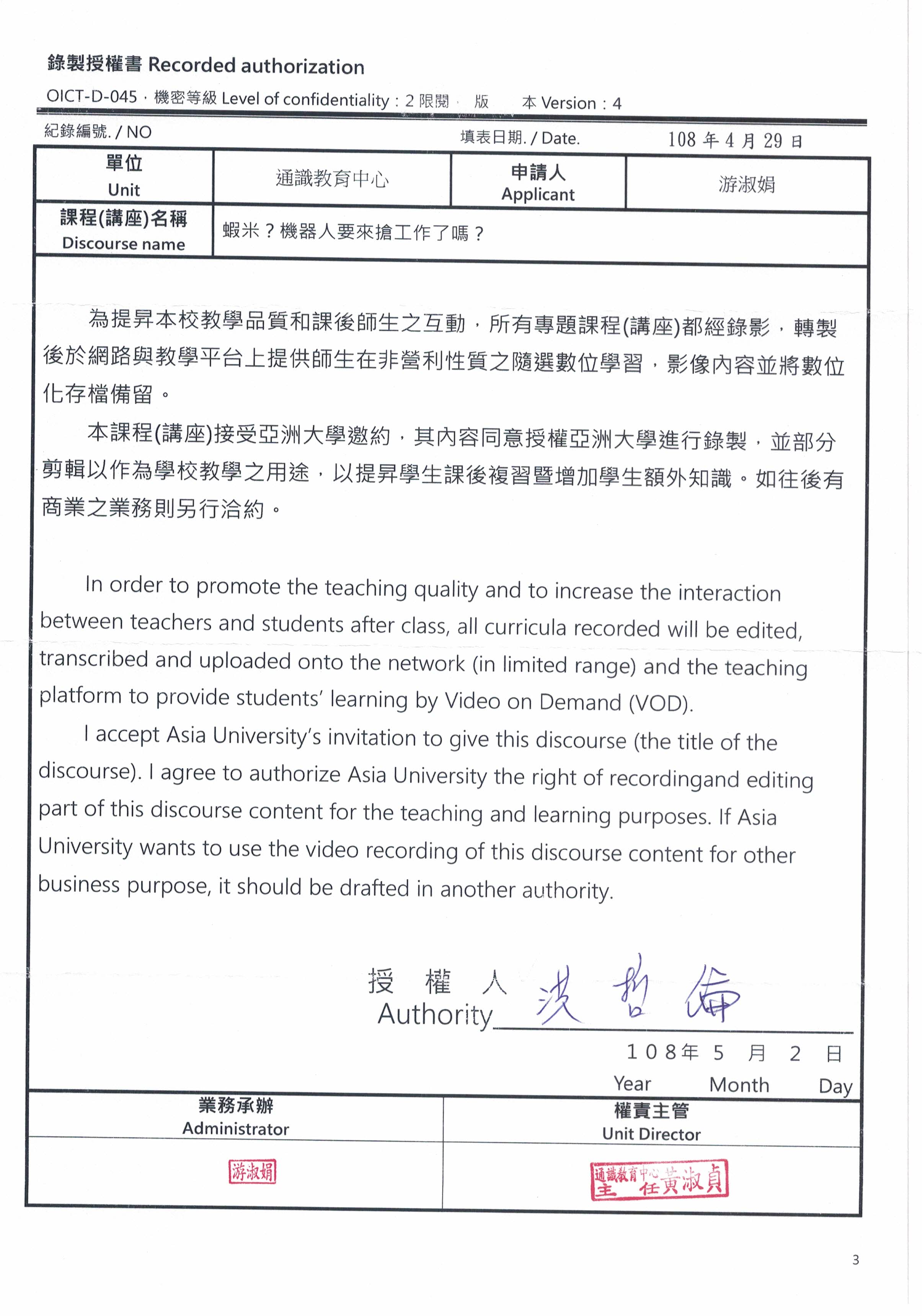 地點:行政大樓A101國際會議中心