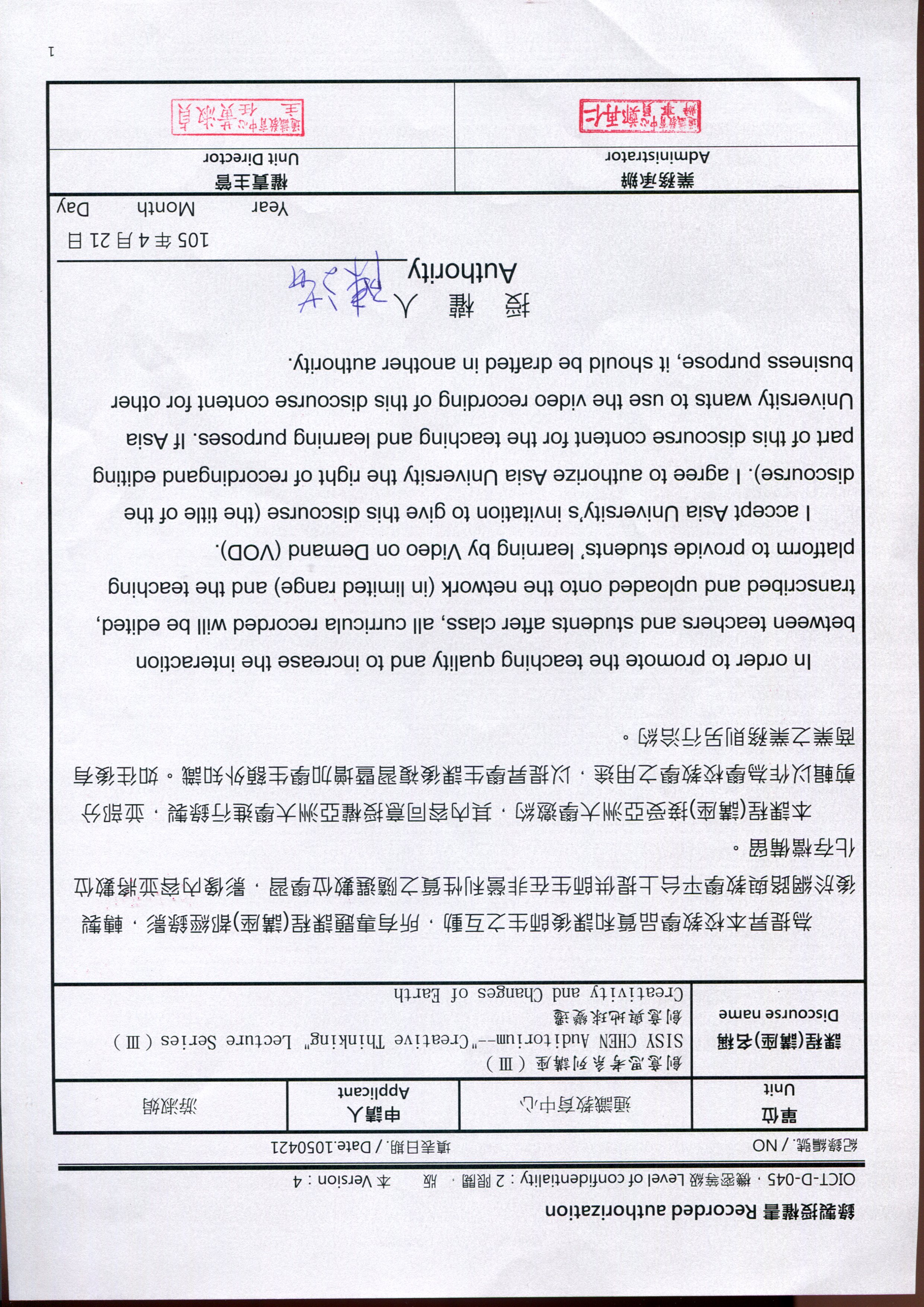 地點:行政大樓A101國際會議中心