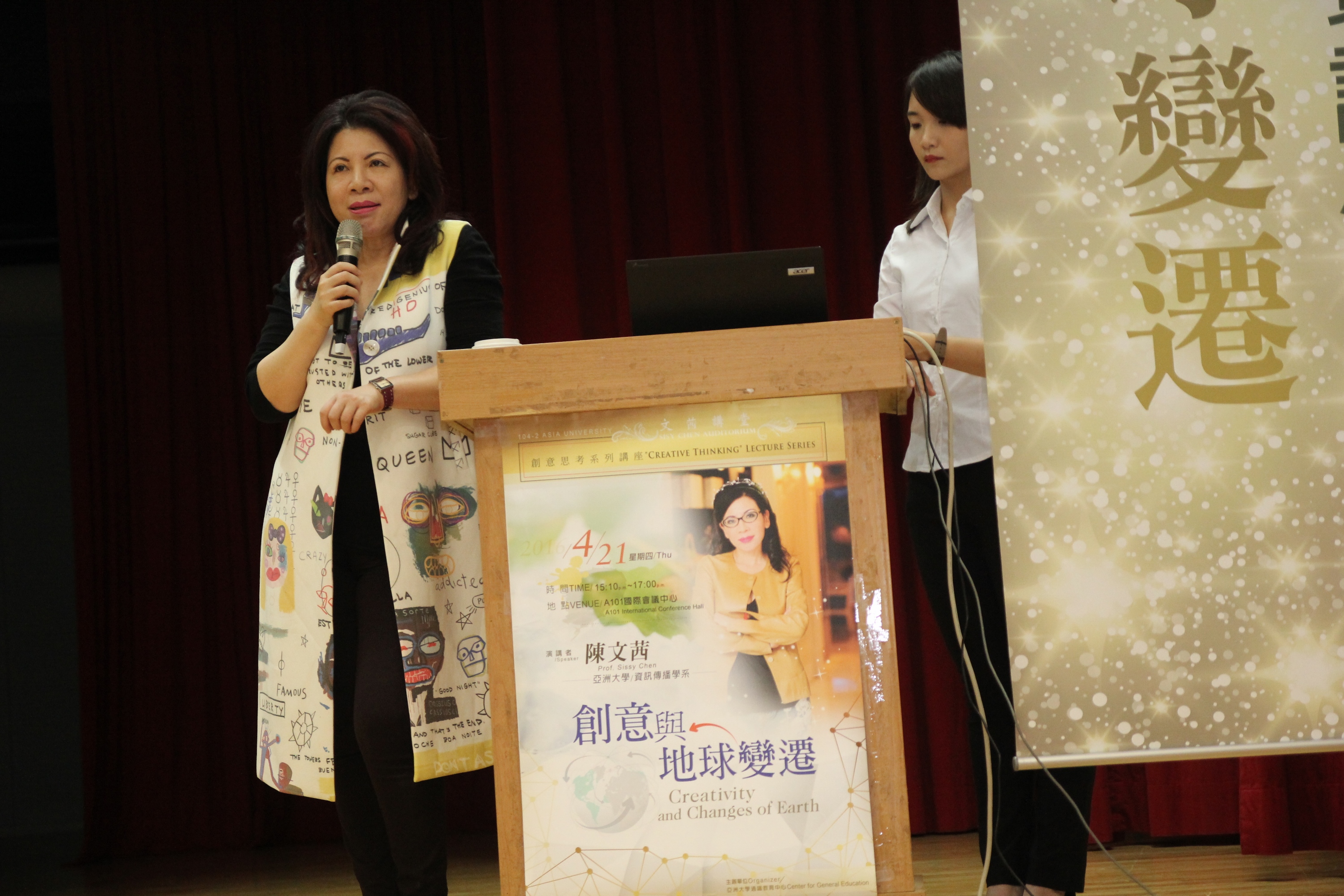 如果你的創意是來自浪費地球資源,那麼你的創意是不會被接受的!」陳文茜教授一開講就說,面對地球的變遷、全球暖化,我們住在無法預知地層裡面的結構,尤其是最近發生熊本大地震,連帶挑起東京大地震與南海海溝地震等無法預期的天災恐慌。目前日本對於災害的觀念不是預防地震,而是希望可以減災,亦即在地震發生前好好活、在意外哪天發生時試著減災或無損,是我們現在就要面對的問題。