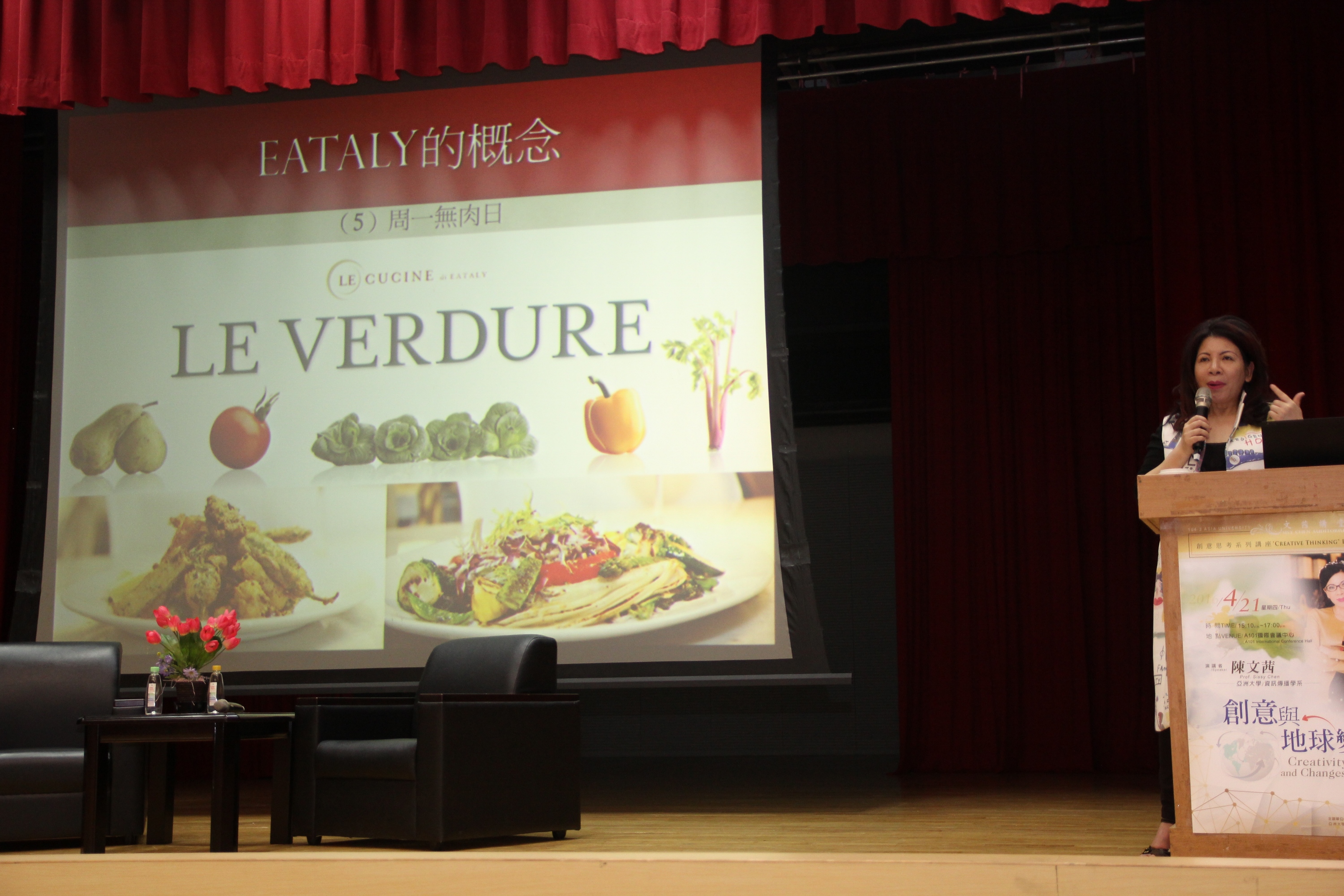曾經參與拍攝紀錄片正負2度C的陳文茜教授,勉勵同學要好好愛護我們珍愛的地球,為美麗的地球進行一份環保之心,以綠化行動保護我們居住的地方;當我們想像未來的世界,如果海平面淹沒了地面,那人類要到哪裡生存。這個重要的問題其實會加深所謂的貧富差距,就像小林村的滅村,在高雄地區比較貧困的地區被滅村的事實。